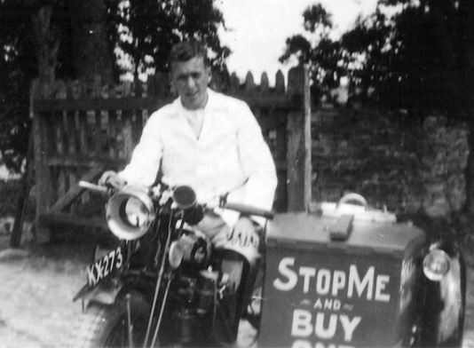 Albert already had an old WW1 Matchless motorcycle and side car, he decided to get his ice cream to the masses by hitting the streets of Gloucestershire, so he set about converting the side car to store his wares. Once ready, he packed the side car with dry ice to help keep his ice cream cool, grabbed a hand bell and off he went.